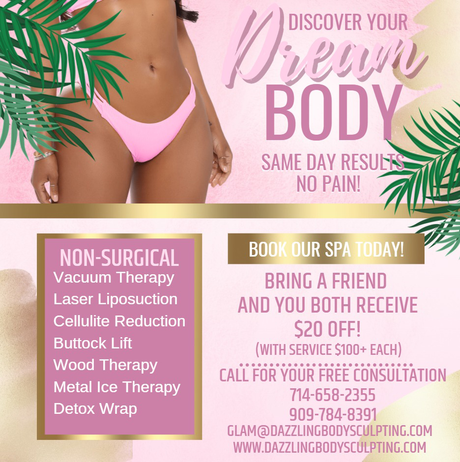 Dazzling Body Sculping offers a wide range of body procedures designed to make you look gorgeous and delightful. DBS is proud to provide our customers the best service, quality and most importantly care!